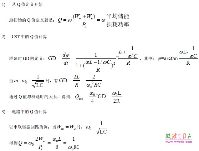 先介绍品质因数Q 值最根本的定义,然后在CST 中通过计算群时延得到Q 值。接着利用人们熟悉的电路原理,通过谐振电路计算Q 值,并证明CST 中的Q值等于电路中的有载Q值。在串联谐振回路里带宽BW和Q值之间的关系是互为倒数,这也将在文章中推导。