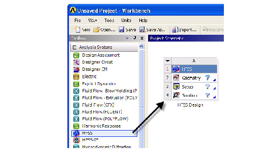 ANSYS Workbench Integration Overview > Adding New Ansoft Analysis SystemsA new Ansoft Analysis System can be added to a Workbench Project Schematic either by dragging and dropping it from the Toolbox: