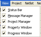 The Designer Desktop > Basic View MenuThe basic View pulldown menu is displayed when no editor is open in the Design area, and when the Netlist Editor or Report Window is active.