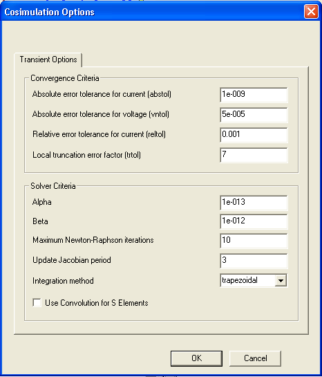 Nexxim Cosimulation Options To specify options for Nexxim subcircuits during System/Nexxim cosimulation, left-click on the Nexxim subcircuit icon to make the subcircuit schematic the active window. Select Cosimulation Options from the Nexxim Circuit pulldown on the top menu bar. The Cosimulation Options dialog opens: