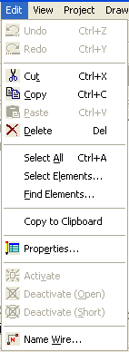 The Designer Desktop > Edit Pulldown for Schematic EditorWhen the Schematic Editor is the active window in the Design Area, the Edit pulldown menu is the following: