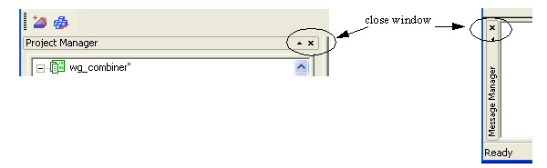 The Designer Desktop > Showing and Hiding WindowsThe Designer desktop consists of a menu bar, a status bar, and several toolbars and windows — many of which can be resized and relocated. The View menu and the shortcut menu in the toolbar area allow you to configure the visability of desktop windows. You can also close any open window by clicking on the "X" in the window title bar.