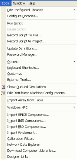 The Designer Desktop > Tools Pulldown MenuThe Tools pulldown contains operations that are common to the analysis tools: