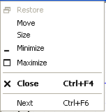 The Move and Size operations are not needed. To move an editor window, drag it by the top bar into the desired location. To resize an editor window, position the cursor at an edge or corner, and drag the border in or out. Click Minimize (or use the Minimize icon) to collapse the design window into an icon: