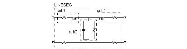 Designer File Formats > Example with SubcircuitsAs an example for use in later discussions, Figure 1 diagrams the circuit topology of a segment of lossy transmission line. Netlist examples to follow will show how this circuit can be implemented with subcircuits: Figure 1. Lossy Transmission Line Segment with Subcircuits ![]() Here are example netlist definitions for the two internal subcircuits. Later netlist examples will show how to combine the subcircuits into a multi-segment transmission line and illustrate how to modify these definitions to incorporate additional features of subcircuits. .SUBCKT sub1 sub1in sub1out R1 sub1in sub1local ser_res L1 sub1local sub1out ser_ind .ENDS .SUBCKT sub2 sub2in sub2out C3 sub2in sub2out par_cap R3 sub2in sub2out par_res .ENDS