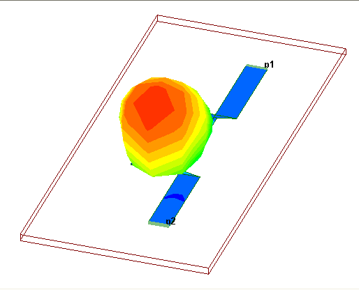 Getting Started with Ansoft Designer > Frequency Animated Far Field PlotsFar fields are not usually of interest when designing a filter, but the procedure is shown here for reference. To be able to plot the currents and far field, a discrete sweep must have been run, with Generate Surface Current selected in the solution setup, so that the currents are saved and are available to be plotted. As with the current animation, you can define the frequency at which you view the far field: Right-click Setup1:Sweep2:Far Field and click Frequency. Click 2.4 GHz.