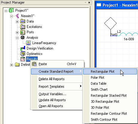 To create a report, right-click on Results in the Project Manager and choose the type of report you wish to create: