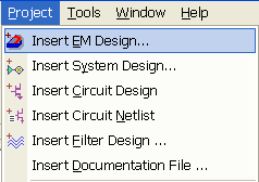 To create a design, choose one of the following Project menu items or click on one of the toolbar “Insert” icons.