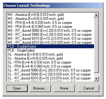 click Insert System Design. 3. The Choose Layout Technology dialog box opens. Select PCB - DoubleSided and then click Open.