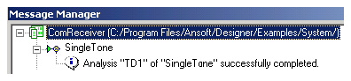 3. Check the Message Manager for status. In this example the message confirms a successful analysis, but if an error occurs it will be reported here.