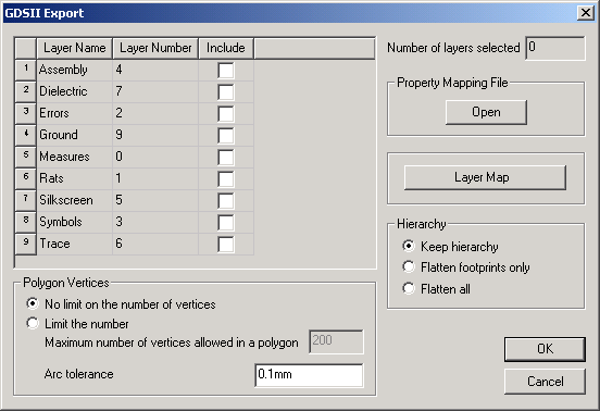 ![]() Check an Include box for each Layer you wish to save. The number of layers chosen is displayed in the Number of layers selected box. Click Open to view the Property Mapping File. Click Layer Map to view the Layer Mapping File. Select No limit on the number of vertices or enter the Maximum number of vertices allowed in a polygon. Select the Hierarchy you wish