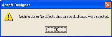 If none of the selected objects can be duplicated, due to type or other restrictions, the following error window opens: ![]()