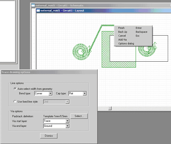 Layout Editor User Guide > Manual Trace GenerationTo set the configuration options for Manual Trace Generation, select Trace > Manual routing from the Draw menu. This opens the model’s Trace Drawing Options dialog: ![]() The following options are available: Auto-select width from geometry will define the line style by bend type, cap type, and the minimum width of the geometry that is being connected. Used fixed line style will define the line style from the named line style, which explicitly gives a width as well as bend and cap types. Padstack definition displays the type of via to use that is specified when you click Select. Via start layer specifies the start layer for the via. Via end layer specifies the end layer for the via. Start and end layers automatically switch as vias are placed during manual routing. For example, if the first via leads from trace to ground, the second via, by default, would lead from ground to trace. Begin the trace by selecting two pins, edges, or end points and clicking Traces > Manual routing from the Draw menu. Outputs from the trace are generated as the user clicks on the screen and “grows” the trace from subsequent click-point to click-point. During the trace building process, the user can modify values in the Trace Drawing Options dialog to change the trace that is being generated. ![]() You can switch layers by selecting Add Via from the right-click pop-up menu, and can also use this operation to add a via under the current mouse location. HFSS视频教程 ADS视频教程 CST视频教程 Ansoft Designer 中文教程 |