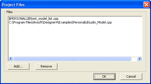 The menu item C Model Editor > Files opens the Project Files dialog: ![]()