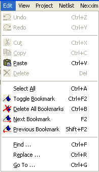 Netlist Editor User Guide > Edit MenuWhen the Netlist Editor is the active window, the Edit menu on the top menu bar includes Netlist Editor commands.