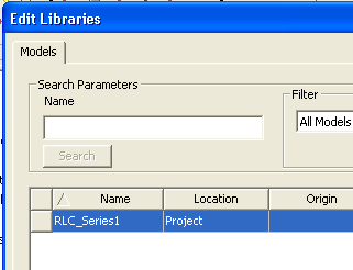 Click OK to close the Edit Libraries dialog. The new model is listed in the Models folder: