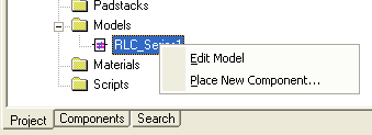 5. Right-click on the new model icon, and select Place New Component from the menu: