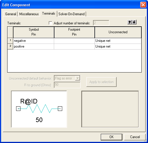 6. Select the Terminals tab and verify that the terminal names have been read from the symbol: