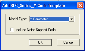 Select the Model Type (S-parameter, Y-parameter, or Analog VI, and indicate whether the template is to include code for noise analysis. Click OK. 7. The new model list file and the C Code Template appear in the design area: