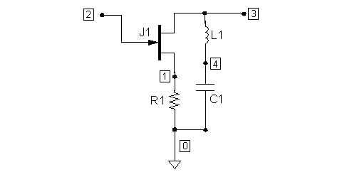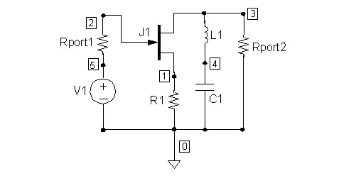 Nexxim Simulator > LNA Circuit Netlist ConfigurationIf you are using the Netlist Editor to create a design, you add the test ports to the netlist with port impedance resistors (see Resistor, Port Impedance for details). Suppose the circuit consists of the four elements in the following netlist: * JFET circuit example J1 3 2 1 njf