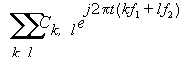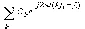 The frequency of the response has been shifted by fi. When constant A is normalized to 1 (one), the coefficient Ck gives the magnitude of the response at harmonic k. In a circuit with two large-signal tones f1 and f2, the periodic steady state can be represented by the equation: