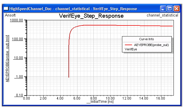 The values for AEYEPROBE are the bit error rates using logarithmic scaling. Amplitude represents the voltage transitions and UnitInterval is the location of the data relative to the unit interval. 2D Step Response Plot To display the initial step response of the channel: Under Reports, select Create Standard Report>Rectangular Plot. Use the Domain pulldown to select Initial Reponse. Click New Report. The report shows the initial response of the channel in the time domain ![]() Eye Measurements To plot the eye width and height measurements against the bit error rate: Under Reports, select Create Statistical Eye Report>Rectangular Plot. Use the Domain pulldown to select Eye Measurement. Use the CTRL key to select both Eye Width and Eye Height in the Quantities list. Click New Report. The report shows the eye width and height plotted against the bit error rate.