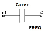 ![]() Instead of the standard capacitor syntax with a specified capacitance value, you can define the capacitance by an expression involving the frequency, using the syntax given in this section.