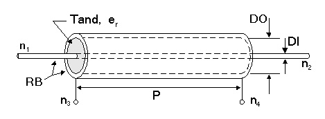 Coaxial Cable, Physical Model with Reference Netlist ExampleAcable2 net_34 net_27 0 0 DI=0.001 DO=0.003 P=.10