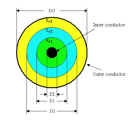 Coaxial Cable, Three Layer Netlist ExampleAcable1 net_34 net_27 DI=0.00 1 DO=0.003 D1=-.5e-7