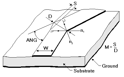 Netlist ExampleAbend1 1 2 W=3e-4 ANG=30 M=0.3 where FR4, the selected layout technology or substrate type, has a definition such as: .SUB FR4 MS( H=7.6200e-004 Er=4.4 TAND=0.02 TANM=0 Notes1. [All substrates] Reference planes coincide with the inside vertex of the corner. 2. [Microstrip] The frequency should be below the cutoff frequency of the first higher mode on the microstrip: