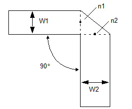 ![]() Netlist FormAxxxx n1 n2 W1=val W2=val [NSUM=val] n1 and n2 are the names of the nodes attached to the mitered bend. The entry COMPONENT=mitered_bend identifies the element as a mitered bend. The entry SUBSTRATE=substrate_name identifies the microstrip substrate model name selected for the design (see Selecting a Microstrip Substrate). See the Microstrip (MS) Substrate for information on this substrate type.