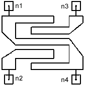 ![]() Netlist FormatA Lange coupler, physical length instance has the following netlist format: ALANGxxx n1 n2 n3 n4