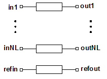 ![]() Netlist FormA symmetric multiple coupled line, physical length instance has the following netlist syntax: Axxx in1 [...inNL] refin