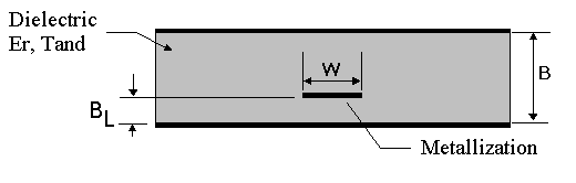 Offset Stripline Substrate Model Netlist FormatThe Offset Stripline substrate model has the following netlist format: .SUB substrate_name OSL ([B=val] BL=val [ER=val] [TAND=val] [MET1=val] [T1=val] [MET2=val] [T2=val] [MET3=val] [T3=val] [RGH=val]) The substrate_name is the name for the substrate type used in distributed elements that refer to this substrate definition. The entry OSL is required to identify the Offset Stripline substrate type. The OSL identifier must immediately follow the substrate_name. Inside the parentheses, the labeled parameters may be entered in any order.