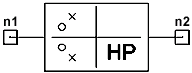 ![]() Netlist SyntaxAn instance of a pole-zero high pass filter has the following Nexxim netlist syntax: Axxx n1 n2 [FC=val][GF=val] [R1=val] [X1=val] [R2=val] [X2=val] POLES=[rp1 ip1 ...] ZEROS=[rz1 iz1 ...] COMPONENT=polezero_highpass_filter n1 and n2 are the nodes connected to the filter. The entry COMPONENT=polezero_highpass_filter is required.