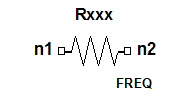 ![]() Instead of the standard resistor syntax with a specified resistance value, you can define the resistance by an expression involving the frequency, using the syntax given in this section.