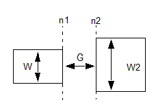 ![]() Netlist FormatAn asymmetric gap instance has the following netlist syntax: Axxx n1 n2 W=val W2=val G=val COMPONENT=asymmetric_gap SUBSTRATE=substrate_name n1 and n2 are the names of the nodes attached to the asymmetric gap. The entry COMPONENT=asymmetric_gap identifies the element as an asymmetric gap. The entry SUBSTRATE=substrate_name identifies the Stripline substrate model name selected for the design (see Selecting a Stripline Substrate). See the Stripline (SL) Substrate for information on this substrate type.