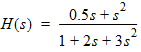 The first coefficients in both numerator and denominator (a0 and b0) are constants, which must be specified even if they are zero. Thus, leading zeros are significant. In addition, intermediate zero-valued coefficients must be explicitly supplied in order to have the non-zero coefficients applied to the correct powers of s. Trailing zeros are not significant, and are automatically removed. The ratio of a0/b0 must be unity (when both a0¹0 and b0¹0). If the ratio is not unity, the numerator coefficients will be scaled to make it unity, before the GAIN is applied. For example, to specify the following transfer function (where coefficient a1=0):