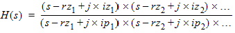 Both poles and zeros are complex numbers with a real part and an imaginary part. Each root must specify the magnitudes of both real and imaginary parts even if one of them is zero (j, the square root of -1, does not need to be entered). The list must also provide the complex conjugate of each root when the magnitude of the imaginary part is nonzero. The roots may be entered in any order. For example, to specify zeros of s-1, s-2j with complex conjugate s-(-2j), s-(-1+3j) with complex conjugate s-(-1-3j), the denominator entry would be: 1 0 0 2 0 -2 -1 3 -1 -3