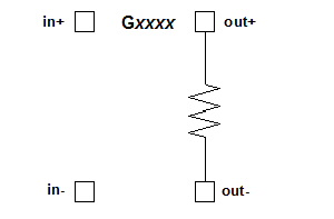 ![]() Linear VCR Netlist FormatThe format for a linear voltage-controlled resistor (VCR) is: Gxxxx out+ out- VCR in+ in- [TRANS=]transfactor [MAX=val] [MIN=val] [M=val] [TC1=val] [TC2=val] [SCALE=val] out+ is the positive node and out- is the negative node of the resistor. VCR is required for the G element voltage-controlled resistor type. in+ and in- are the positive and negative nodes for the control voltage. The label TRANS= is optional, but the transfactor must be given. transfactor is the conversion factor from input voltage to output resistance.