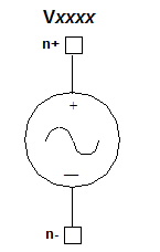 ![]() Sinusoidal Voltage Source Netlist FormThe format for a damped sinusoidal voltage source is: Vxxxx n+ n- [DC=val]