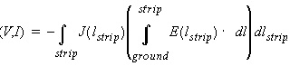 where the voltage (V,I) is a weighted average of the voltage on the strip defined as