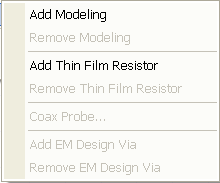 4. With a via selected, click Draw > EM Design Properties, or right-click the via and choose EM Design Properties, which brings up the following submenu: