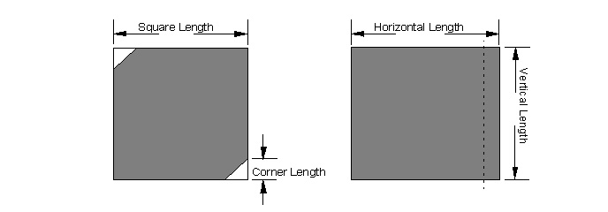 Use the CP Corners Truncated and CP Nearly Square commands to obtain estimates on the dimensions of two different types of singly fed CP patches. To generate circular polarization on a patch using a single feed, you must excite two orthogonal modes on the patch. To obtain two orthogonal modes on a patch, you generally start with a square patch and perturb the element. You can perturb the element by cutting away two opposite corners of the patch or by extending one of the sides slightly. The following figure demonstrates the two types of singly fed CP patches: