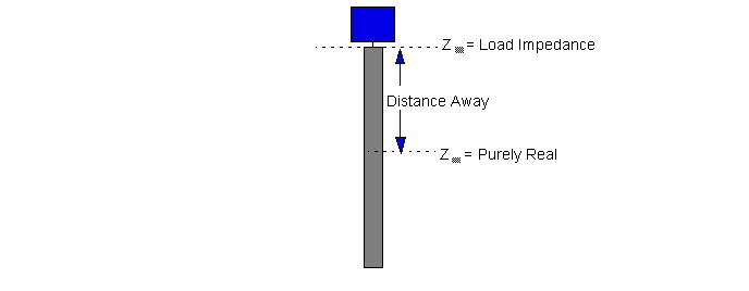 The following figure displays the location along a microstrip line where the input impedance is purely real: