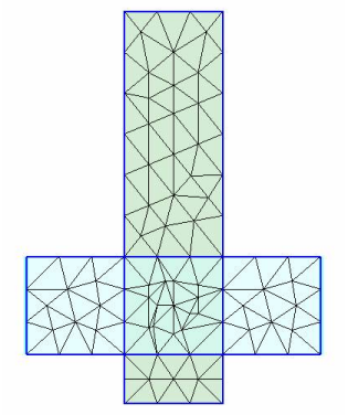 HFSS and Planar EM Simulators > Precedence PrioritizingWhere polygons from different layers/materials overlap, the mesher decides on the material in the area of intersection based on the following rules: 1. For polygons with precedence numbers, the polygon with lower precedence takes priority over those polygons with higher precedence. 2. If the mesher cannot resolve the priority using the precedence attribute, it considers conductivities. The polygon with the higher conductivity takes priority over those polygons with lower conductivity. 3. If conductivities are the same, the stackup index is used. Objects higher in the stackup table (i.e. with a lower stackup index) take precedence over objects lower in the stackup table (i.e. with a higher stackup index). For example, in the following illustration the blue rectangle (a thin metal) has a lower precedence value than the green rectangle (a thick metal), so its material (blue) takes priority where the two come in contact. ![]()