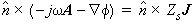 is the imaginary unit, w is the angular frequency, 2pf. A is the magnetic vector potential. f is the electric potential. Zs is the surface impedance. J is the current density. The current normal to the edges of the triangles is calculated.