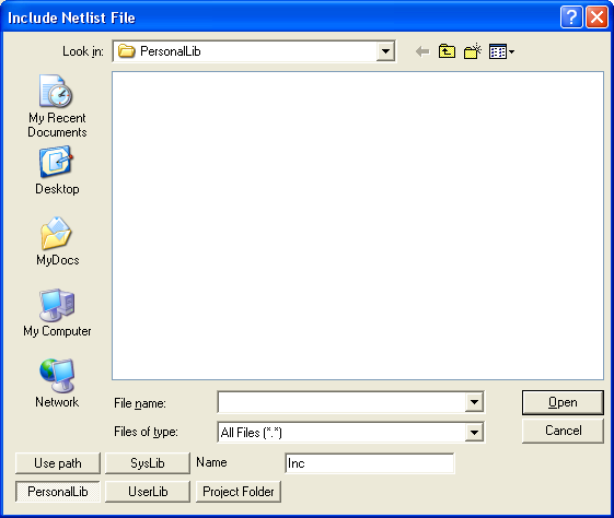 Working with Designer Projects > Accessing Netlist FilesA netlist file contains one or more netlist statements. To add a netlist file to a schematic, expand the icon for the design in the schematic editor by clicking on its plus sign (the design typically has a name such as “Nexxim1”). Right-click on the Data icon, then select Add Netlist File from the pulldown. The Include Netlist File dialog box opens: