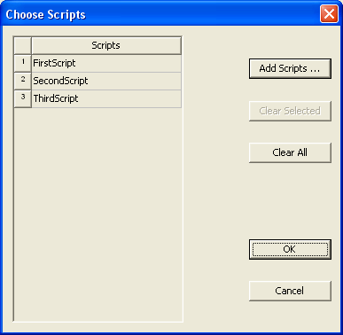 The Description column lists the type of event that will trigger the invocation of the corresponding script(s) listed in the Callback column. When you define an Event Callback script, you specify one or more scripts that will be run after a particular Designer event is detected. 2. If no script name appears in the Callback column, click the Set script button in the Event Callbacks dialog to define a new script. The Choose Scripts dialog opens and is unpopulated: ![]() 3. To modify an existing script that appears in the Callback column of the Event Callbacks dialog, select the script and then click Set script. The Choose Scripts dialog opens and is populated with the existing script(s): ![]() When the Choose Scripts dialog opens, whether it is populated yet or not, its available options allow you to control the following: — Add Scripts opens the Library Editor Script Browser. — Clear Selected clears the selected scripts from the control grid at left. — Clear All clears all scripts from the control grid at left. — Click OK to close the dialog and implement your changes. — Click Cancel to close the dialog and cancel your changes. — When the control grid at left is populated, you can reorder the scripts which are listed by dragging them up and down in the grid. You may also select multiple scripts in the grid and then Add Scripts or Clear Selected. 4. After defining a callback script, the Default Callbacks section at the bottom left of the Event Callbacks dialog allows you to control the following: ![]() — Save will save all of the current Event Callback script settings to the registry. — Load will load the saved settings from the registry. Note that any current settings will be lost. Also note that as each script name is loaded from the registry, a check is done to see if that script is accessible. If it is not accessible, the script setting for that event is cleared and a warning message is displayed in the Message window. — New projects use defaults ensures that each time you choose File/New, and each time you launch Designer and a new project is automatically created, the default Event Callback script settings will be loaded from the registry and applied to the new project. Each script name setting will be used to load the corresponding script into the project. If a particular script is not found, a warning message will be displayed in the message window. You should then check to ensure that the library containing the script is configured before creating a new project. 5. When you have finished defining one or more callback scripts, click OK in the Event Callbacks dialog to close the window and implement your changes. Or click Cancel to cancel your changes.