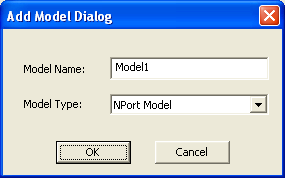 Click in the Model Name window to change the name of the model. Click the Model Type pulldown menu to choose the model type to add. After you choose a model type and click OK, a dialog opens that corresponds to one of the following model types selected: